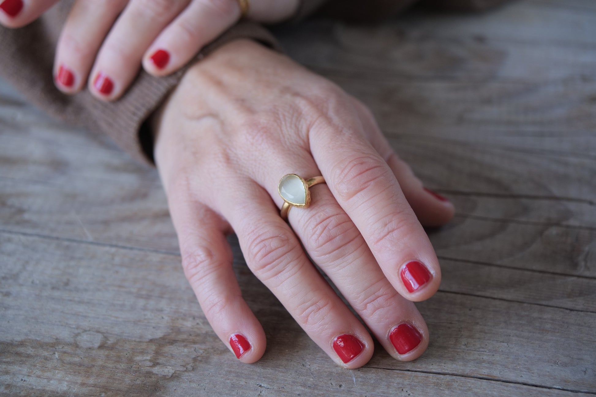Anello a forma di goccia con zircone colorato in ottone bronzo .