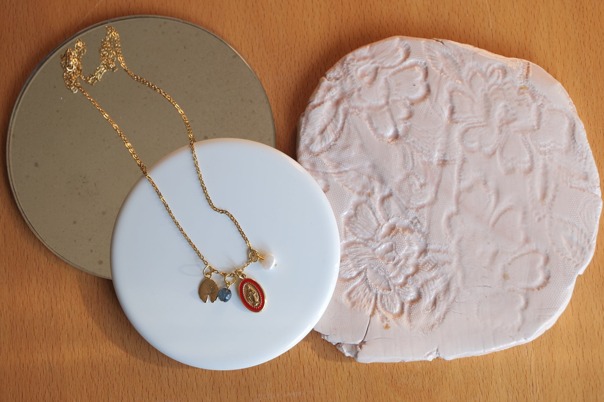 Ogni gioiello è realizzato a mano e la sua irregolarità lo rende unico. Le sfumature del colore sono una caratteristica della pietra.