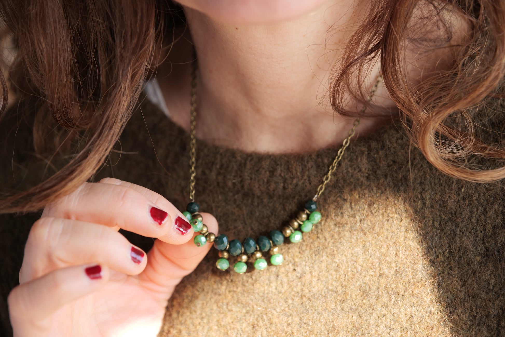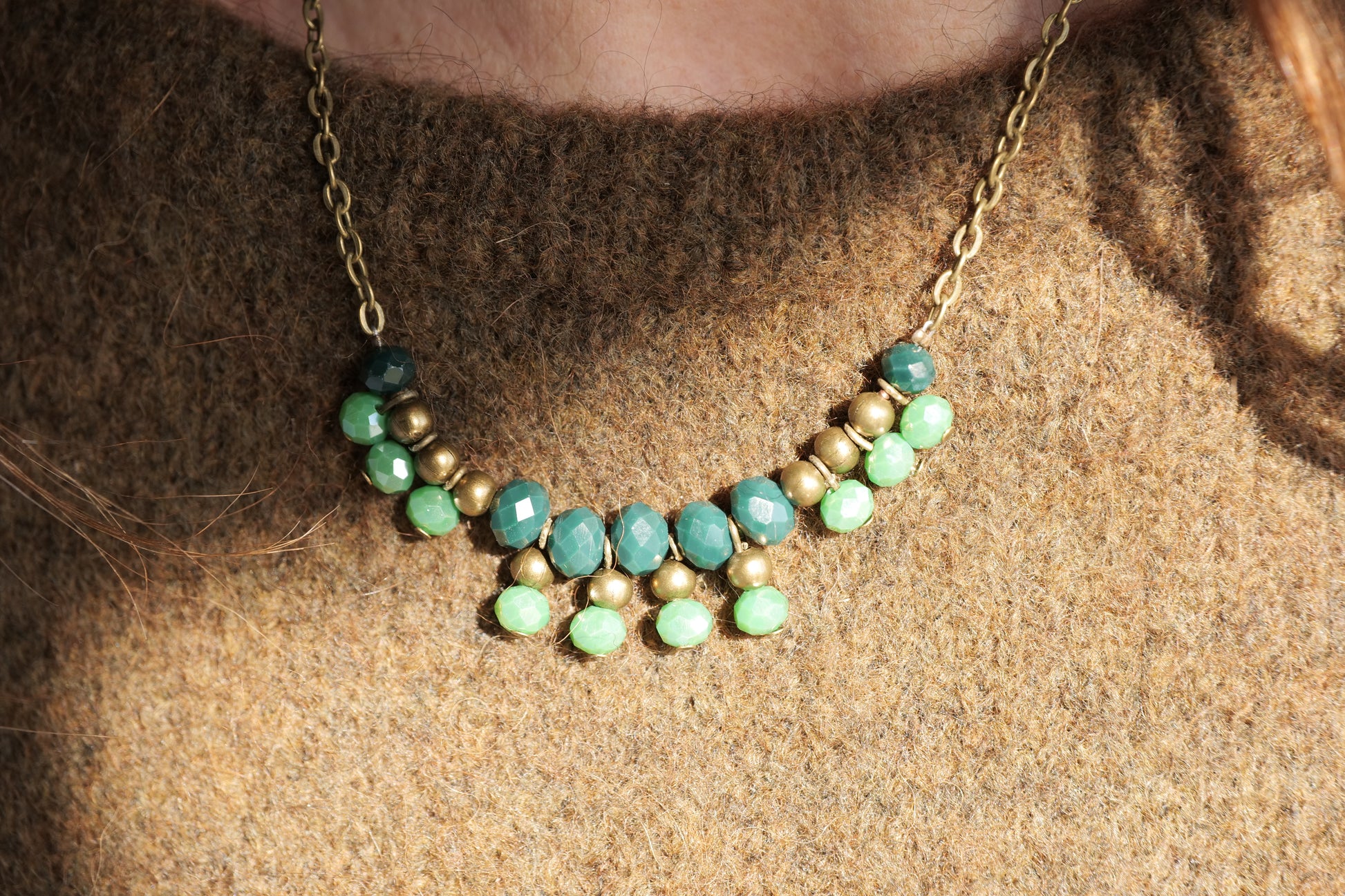 Girocollo in ottone nichel free con piccole pietre pendenti. Lunghezza 48 cm regolabile fino a 43 cm .