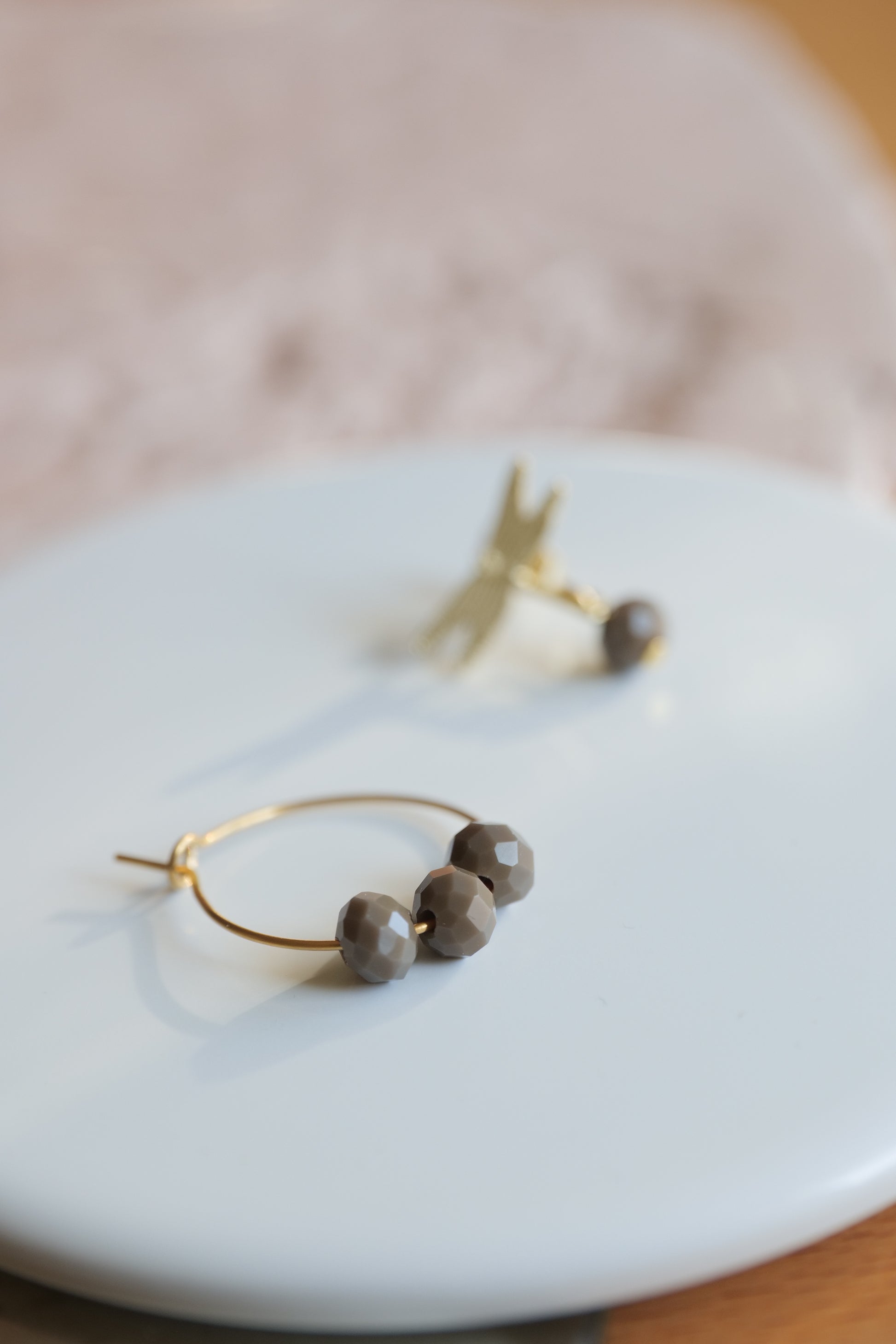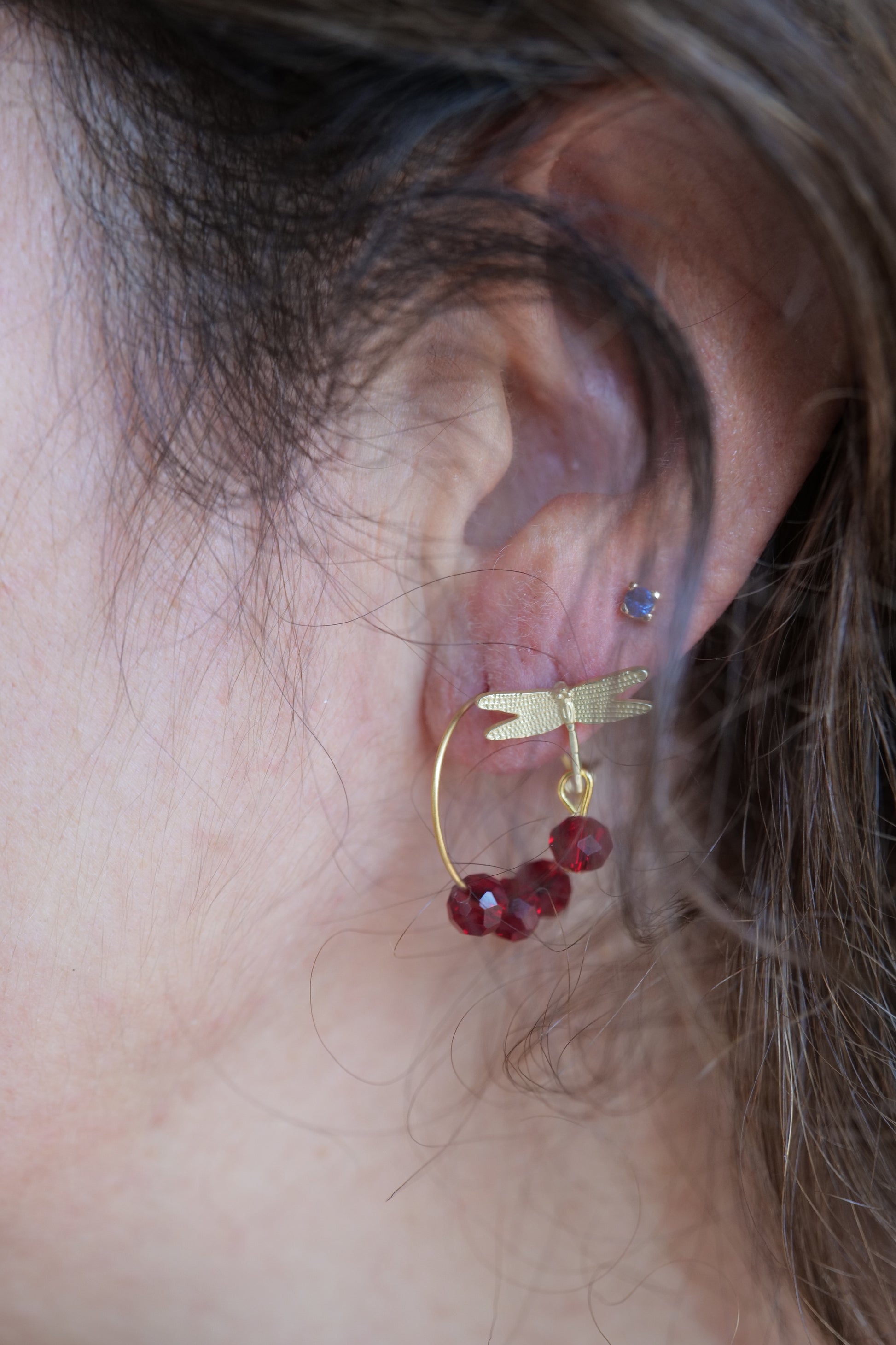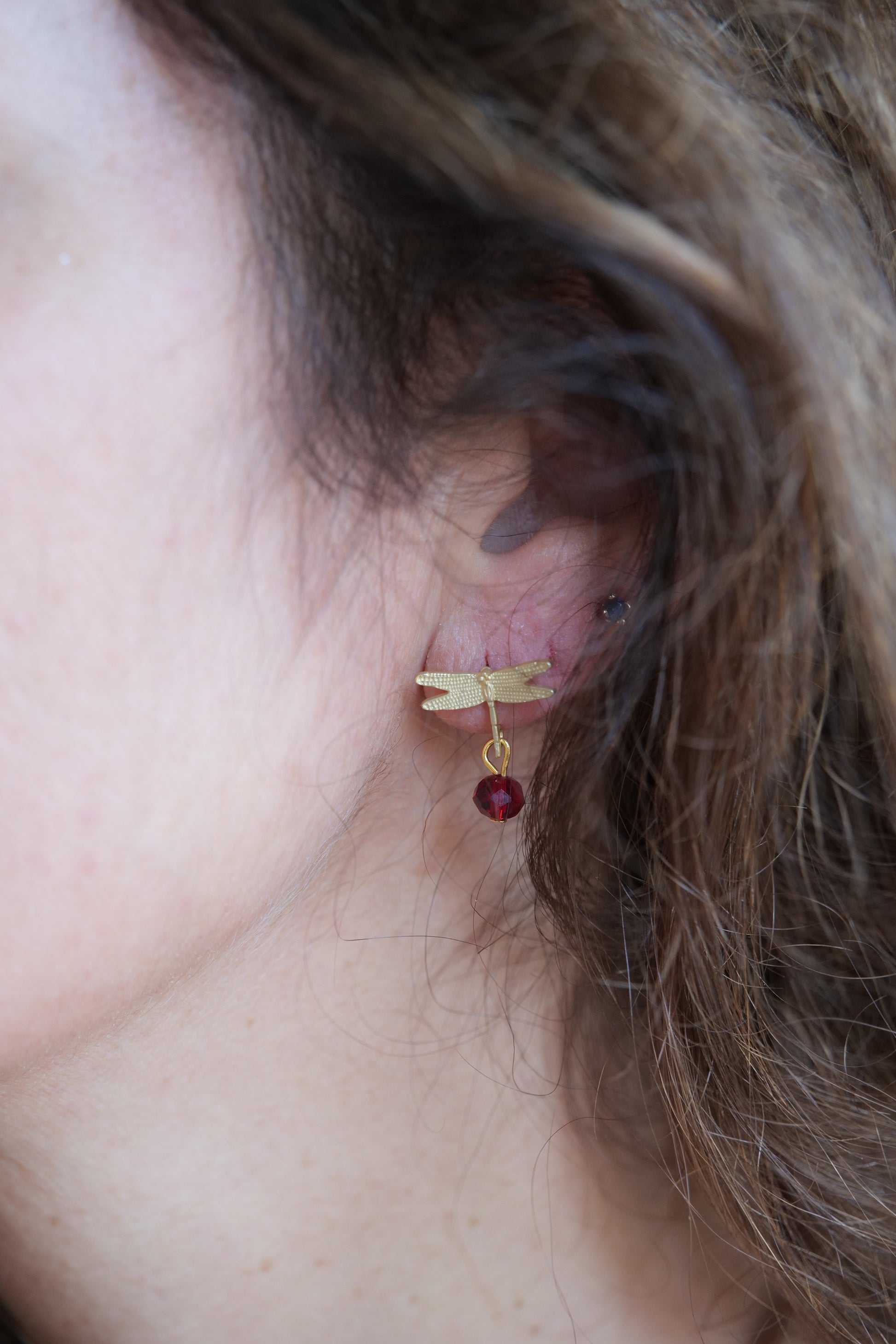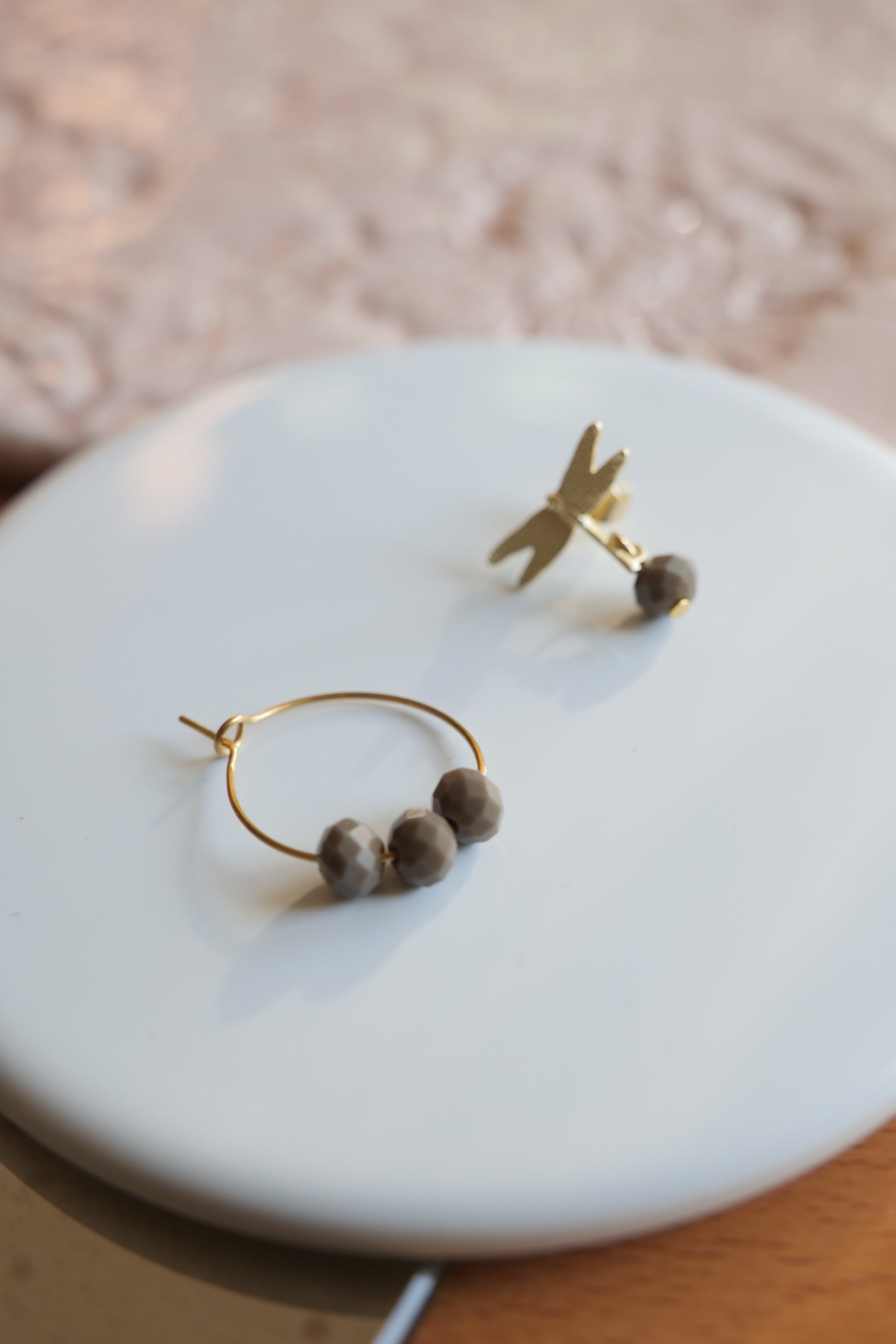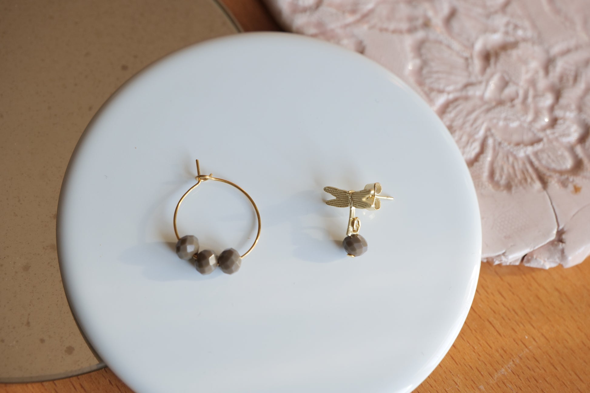 Orecchini asimmetrici in acciaio con cristalli e libellula , simbolo di libertà e trasformazione . Eleganza semplice con un tocco bohémien.